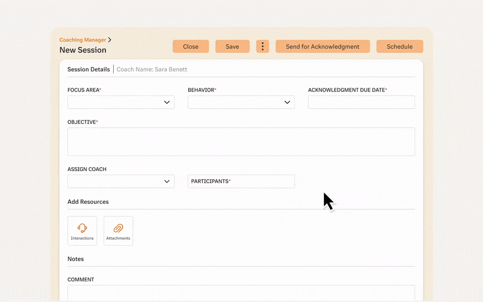 For example, a supervisor can schedule a 1:1 session for an agent who struggles to close issues quickly, focusing on Average Handle Time with the desired behavior of Operate With Urgency.